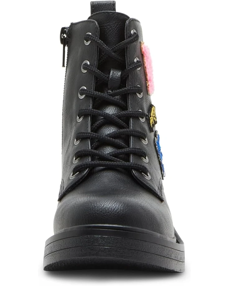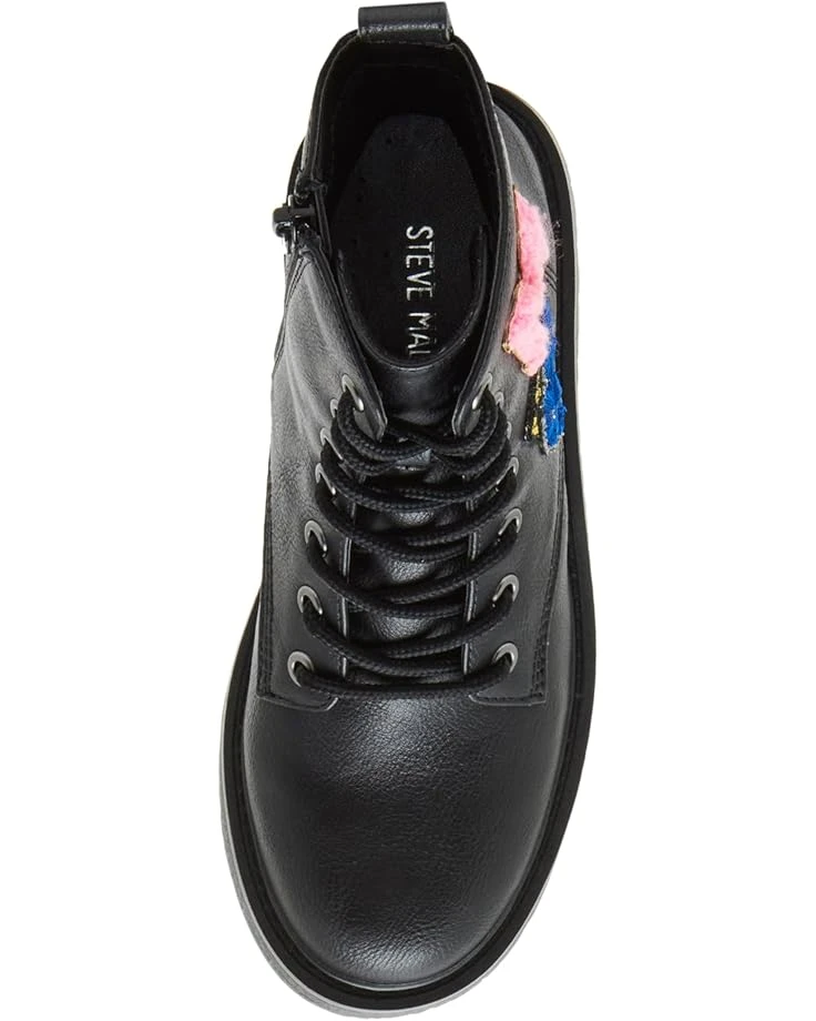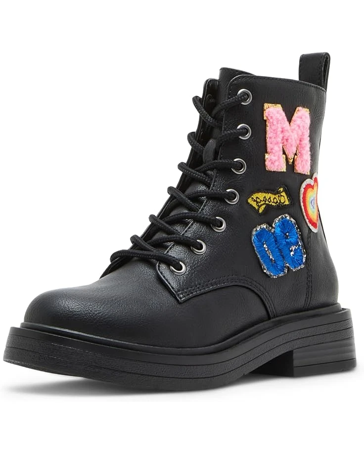 - The Steve Madden® Kids Nolita is the perfect combat boot! Chic girls all over the world are wearing them with anything from leggings and flannel to floral warm-weather frocks. The sleek boots feature polyvinyl chloride upper with colorful patch detail, cotton lining, and rubber insole.