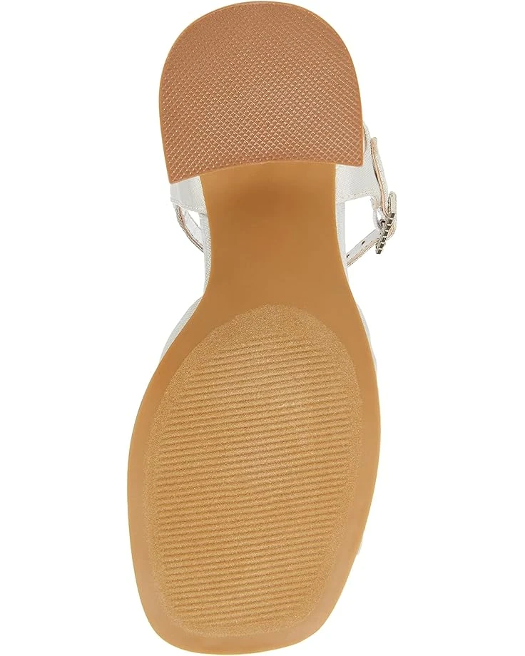 - Ruched accent on the vamp with a rhinestone-embellished hardware at the center.