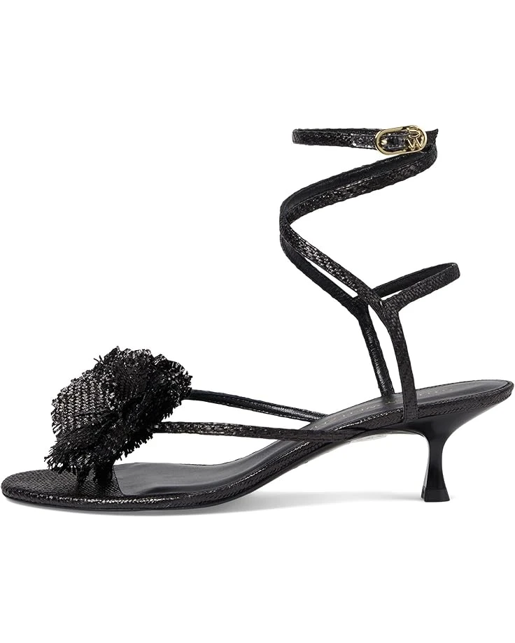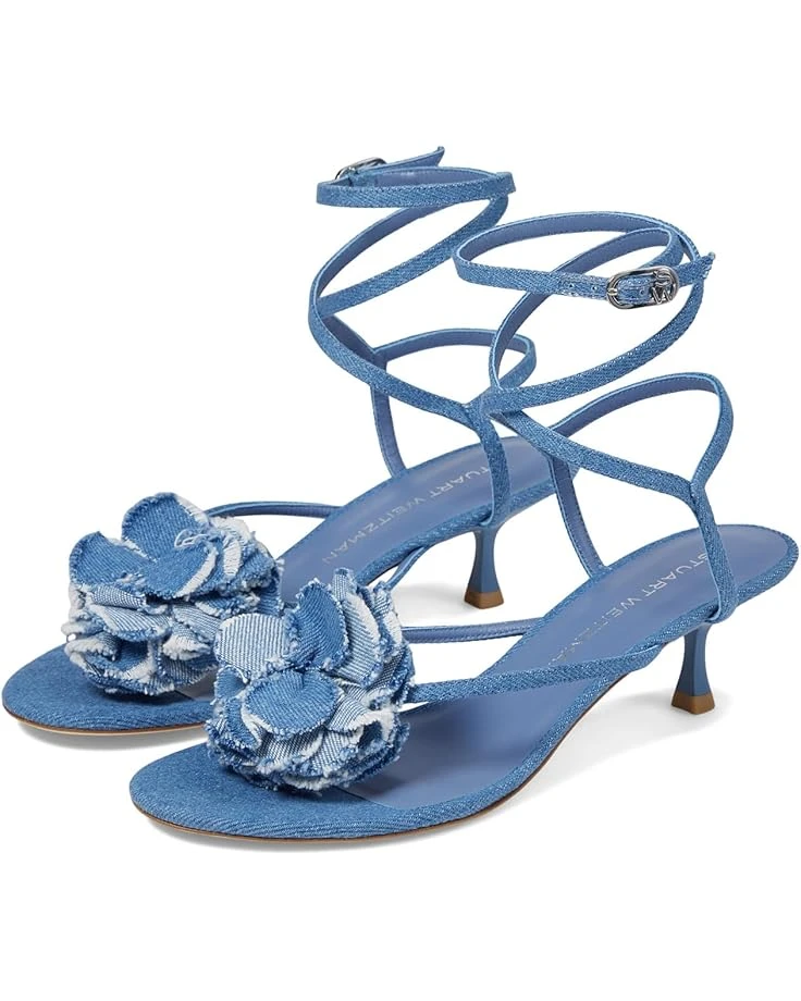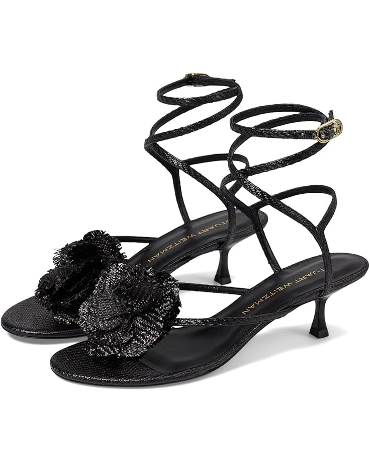 - Handsewn floral applique perfectly elevates the beauteous look of Stuart Weitzman® Belize 50 Sandal. The open toe footwear features toe-post strap for a secure hold, kitten heels, and wrap-up ties with buckle adjustable ankle strap closure.