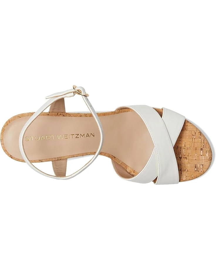 - Make every step powerful and stylish wearing the Stuart Weitzman® Dayna Platform 80. Crafted from leather, cork upper, leather, TPU lining, and leather insole, this pair of sandals features open round toe, crisscross strap vamp, block heel, ankle strap, buckle closure, and brand detailing on the footbed.