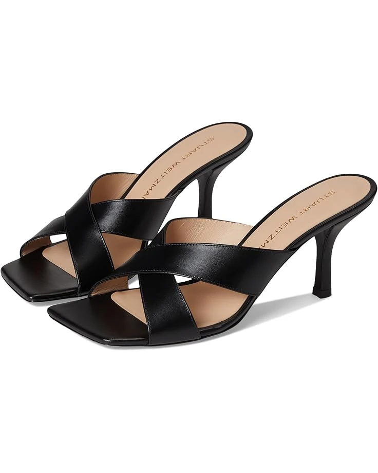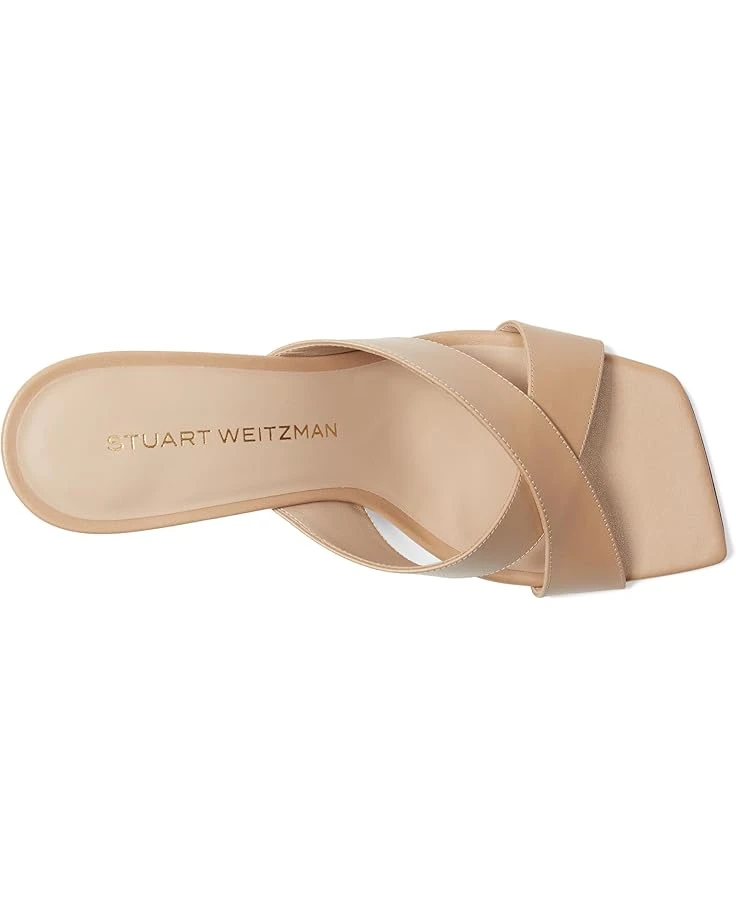 - Encourage confidence and grace with every step wearing the Stuart Weitzman® Dayna Slide 75. Crafted from denim upper, leather lining, and insole, this pair of sandals features open square toe, crisscross strap detailing on the vamp, stiletto heel, and slip-on style.