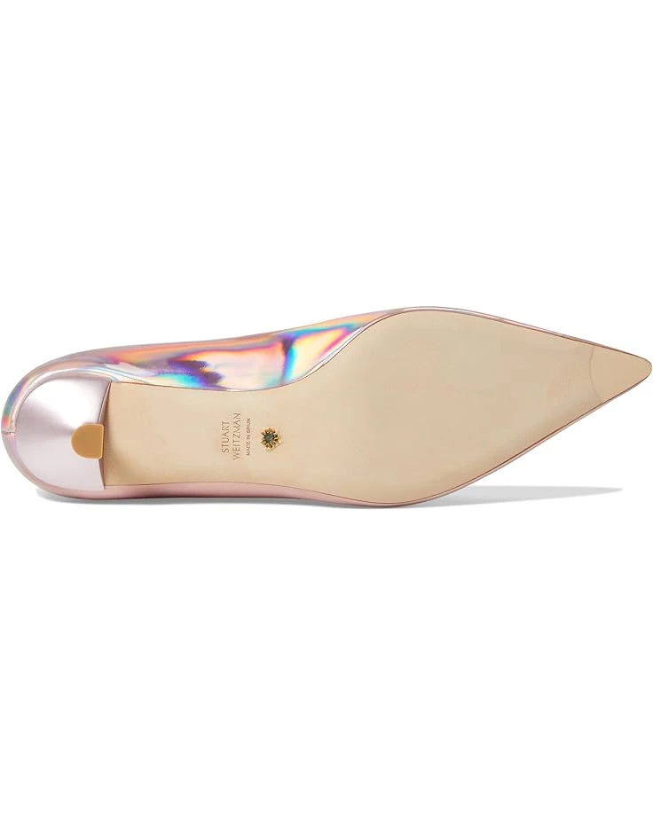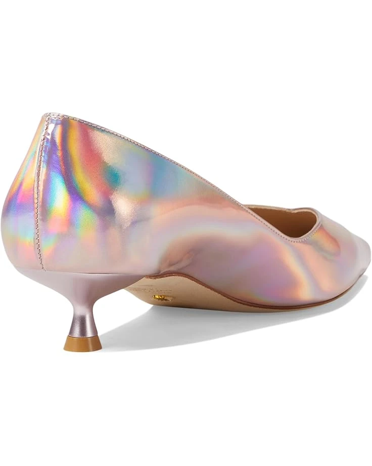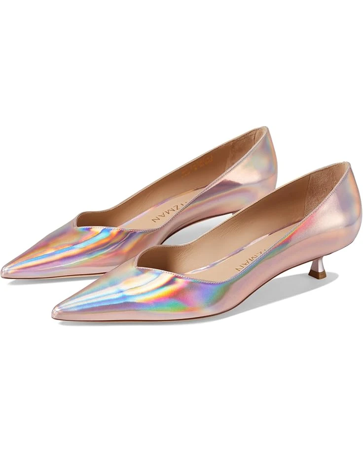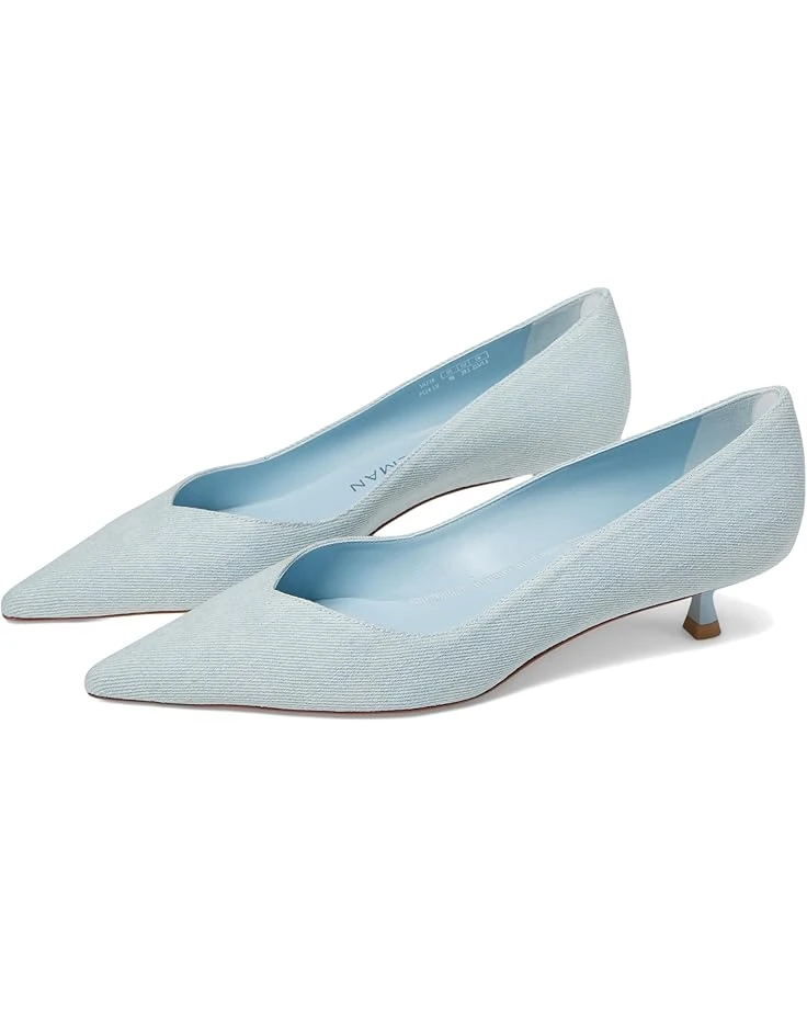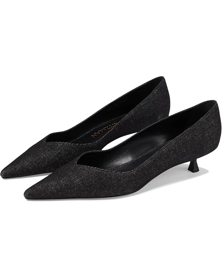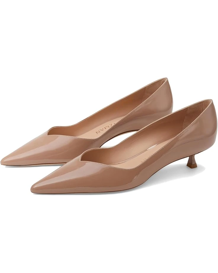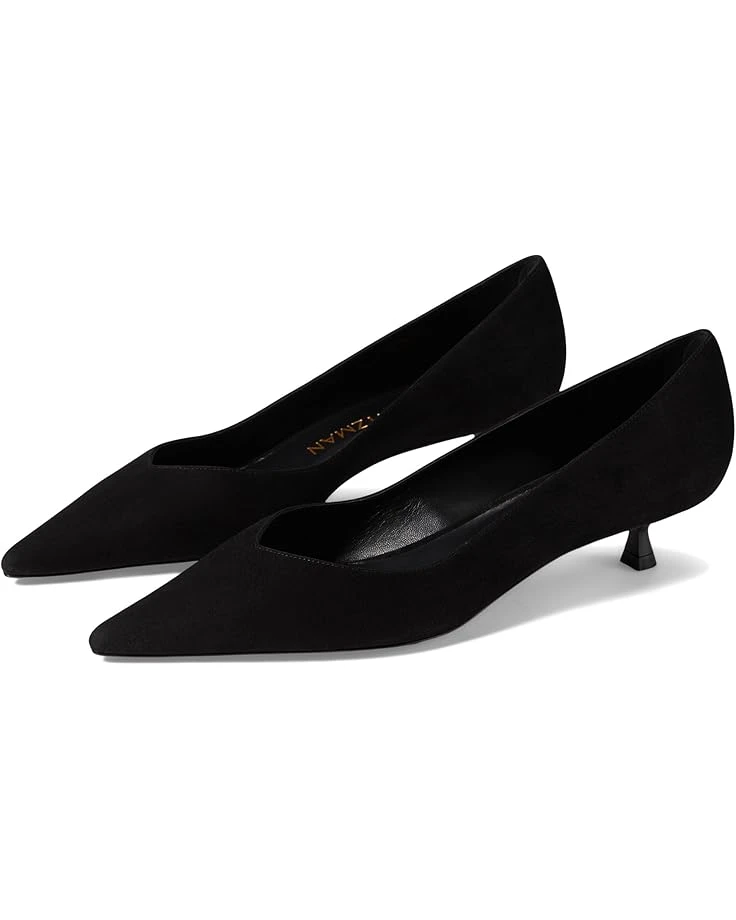 - Elevate your groove wearing the Stuart Weitzman® Eva 35 Pump. Crafted from leather, this pair of slip-on heels features pointed toe design, kitten heel, and brand detailing on the footbed.
