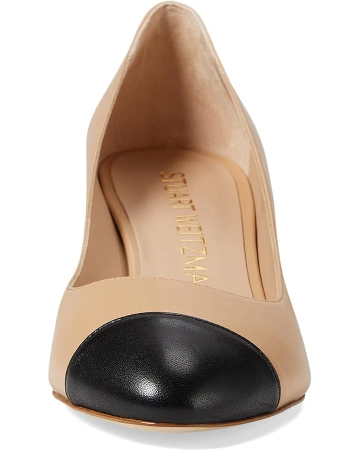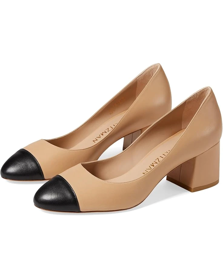 - Ignite your inner boss wearing the Stuart Weitzman® Flareblock 60 Pump. Crafted from leather, this pair of classic slip-on pumps features round toe design, block heel, and color blocked toe.