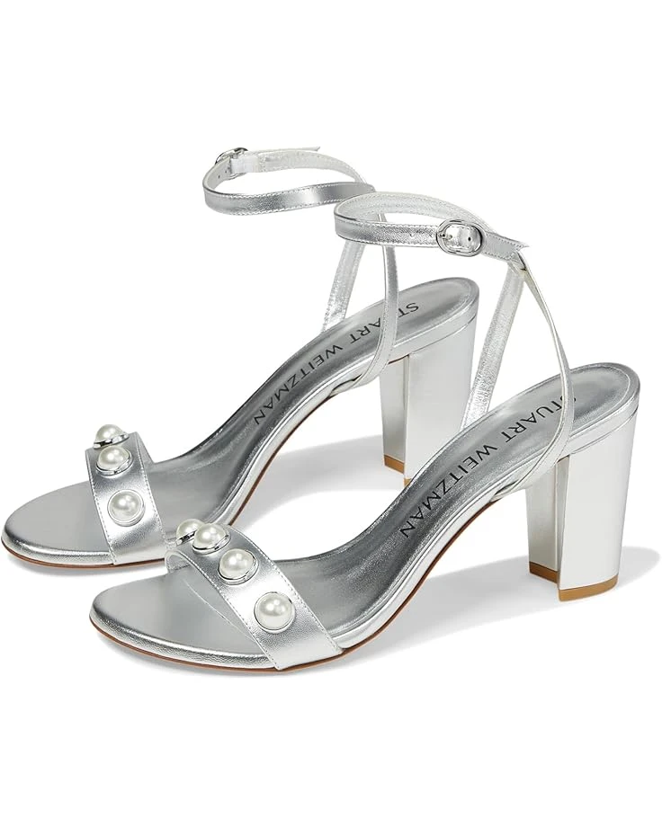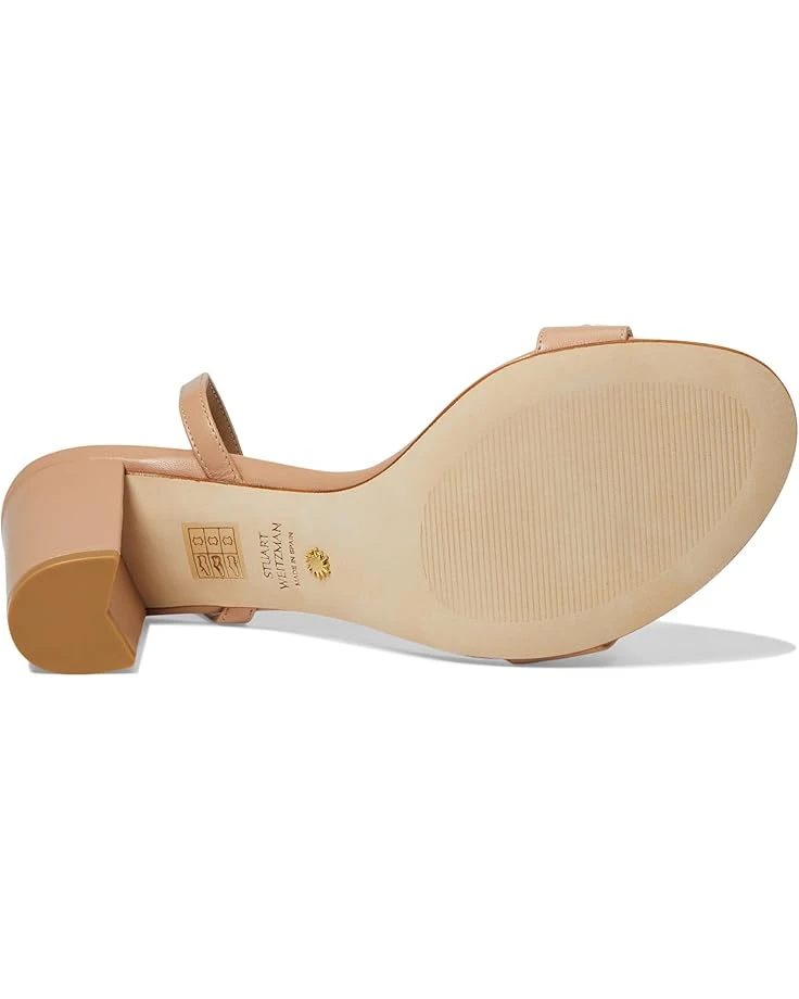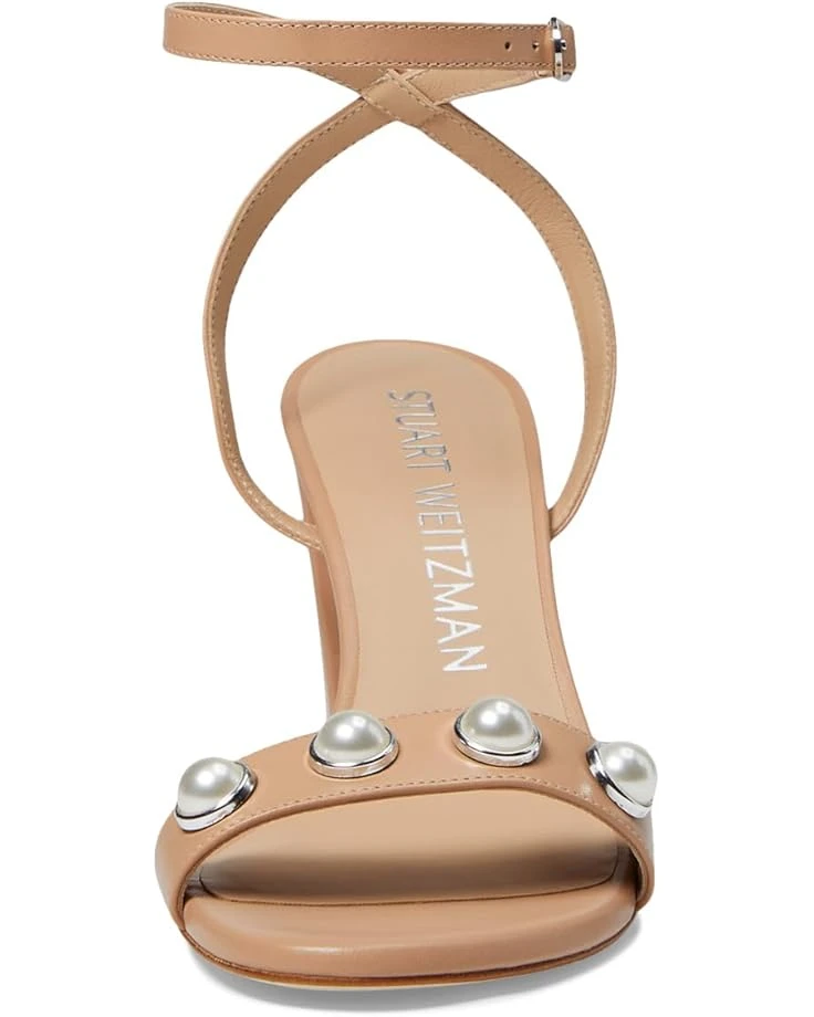 - Step out while surrounding yourself in a zone of fashion excellence wearing the Stuart Weitzman® Nearlybare Portia Sandals. The almond toe pair features leather upper, lining and insole construction with buckled ankle strap closure.