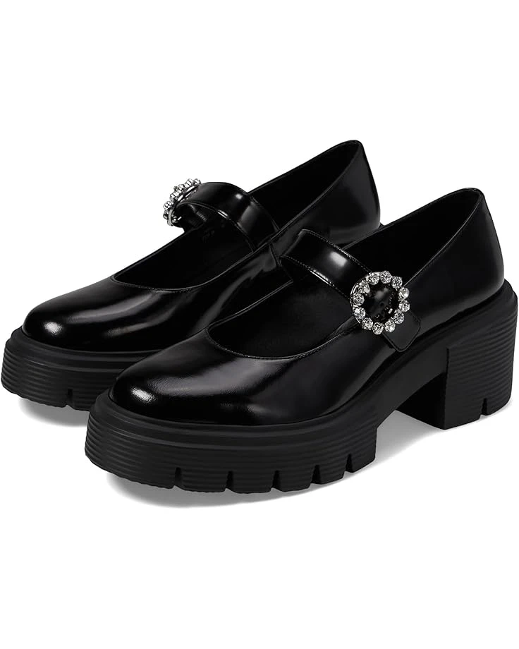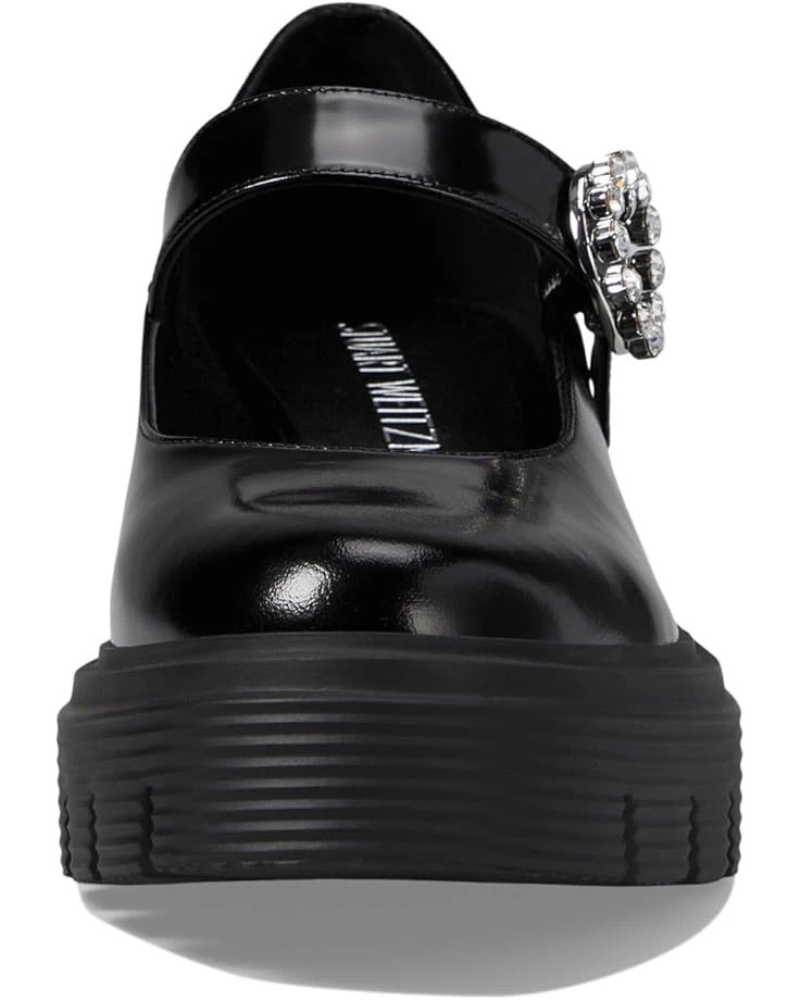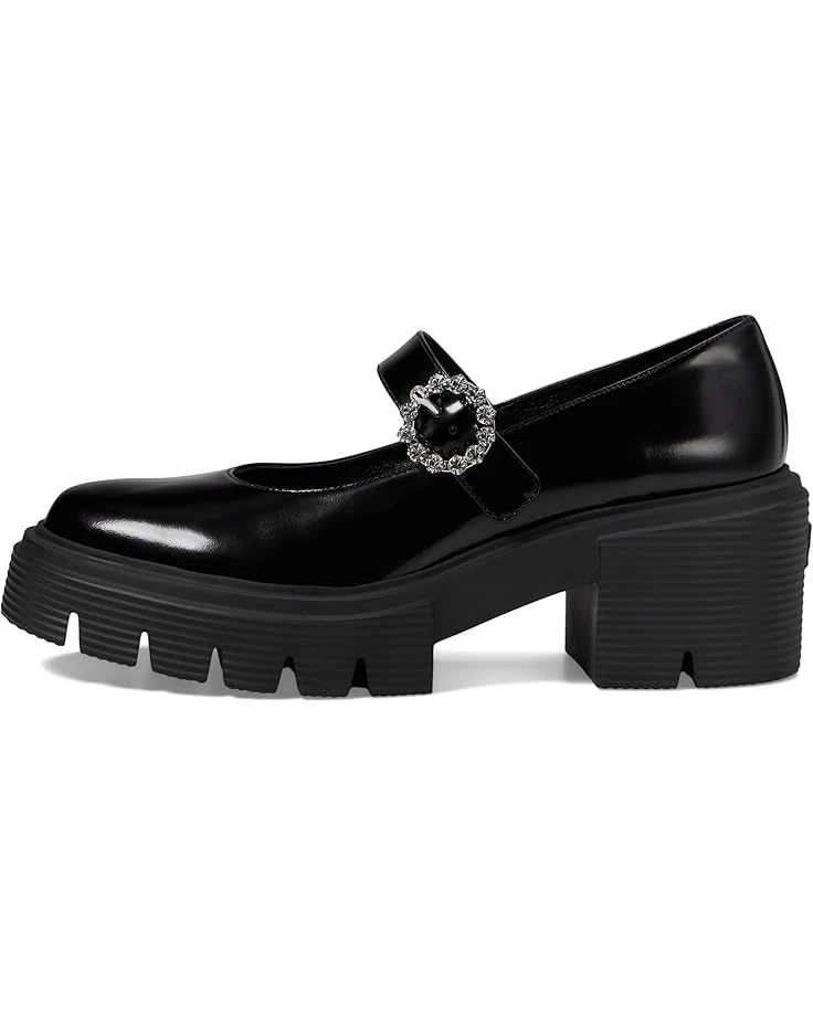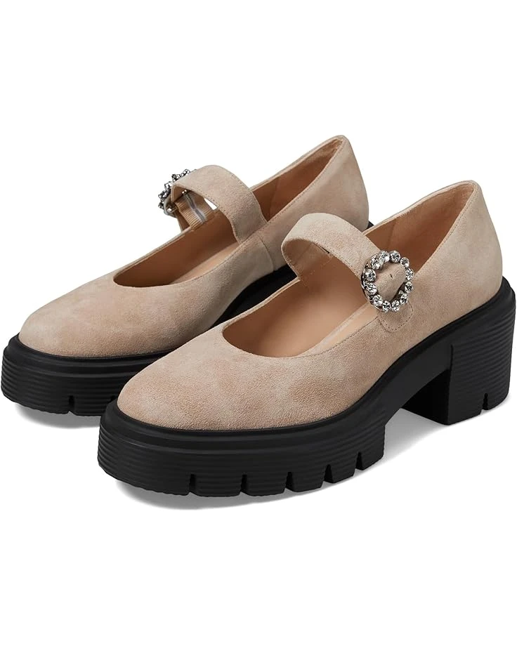 - Accentuate a sophisticated and stylish touch wearing the Stuart Weitzman® Nolita Gem Mary Jane Flats that come with an almond toe shape and an attractive buckle closure. The breathable flats are designed with a leather upper, leather lining, and a leather insole.