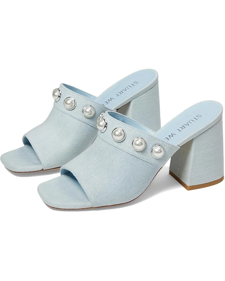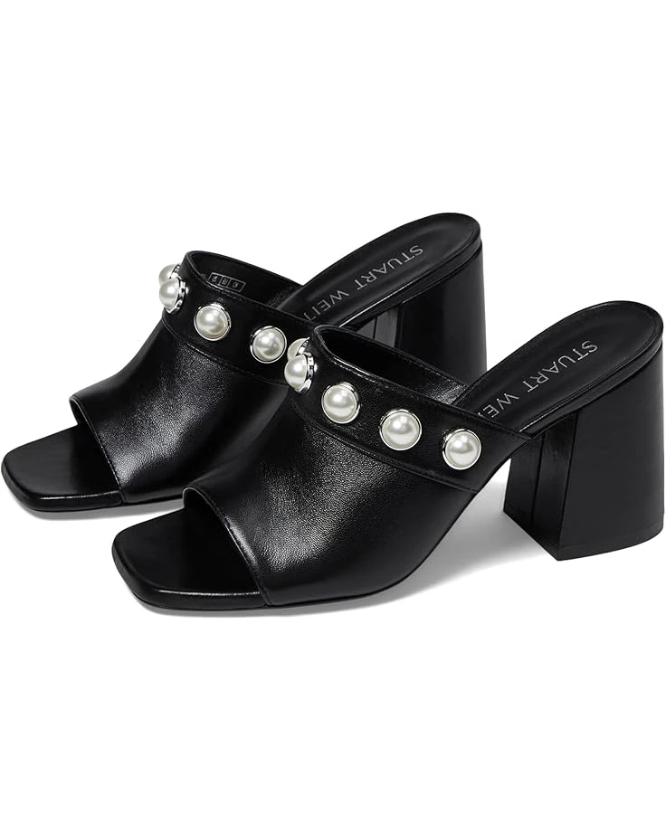 - Stylish and comfortable, the Stuart Weitzman® Portia 85 Slide heels are perfect to amp up your everyday look. The slip-on style heels have an open-square toe design, block heel, and statement pearl detailing on the leather upper. The leather insole and lining ensures breathability and added comfort for prolonged wear.