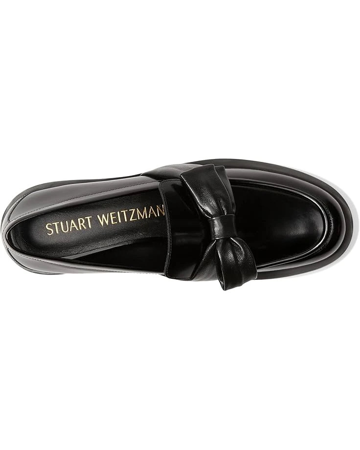 - The Stuart Weitzman® Sofia Bold Loafers are a stylish and sophisticated addition to your footwear collection. The loafers feature a almond toe shape, oversized bow detailing on the upper, and a solid block heel. These are crafted with a leather upper, breathable leather lining, and leather insole.