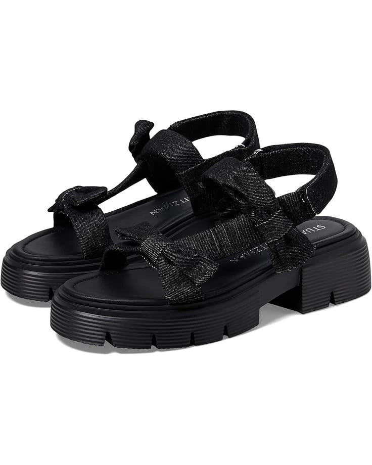 - Add a modern look to your outfits without compromising comfort wearing the Stuart Weitzman® Sofia Nolita Sandal. The low-top sandals are beautifully designed with a vintage strappy denim upper with double bow detail, thermoplastic polyurethane lining, and synthetic rubber footbed. The hook-and-loop strap at the back offers a secured fit and the chunky block heel craete a statement look effortlessly.