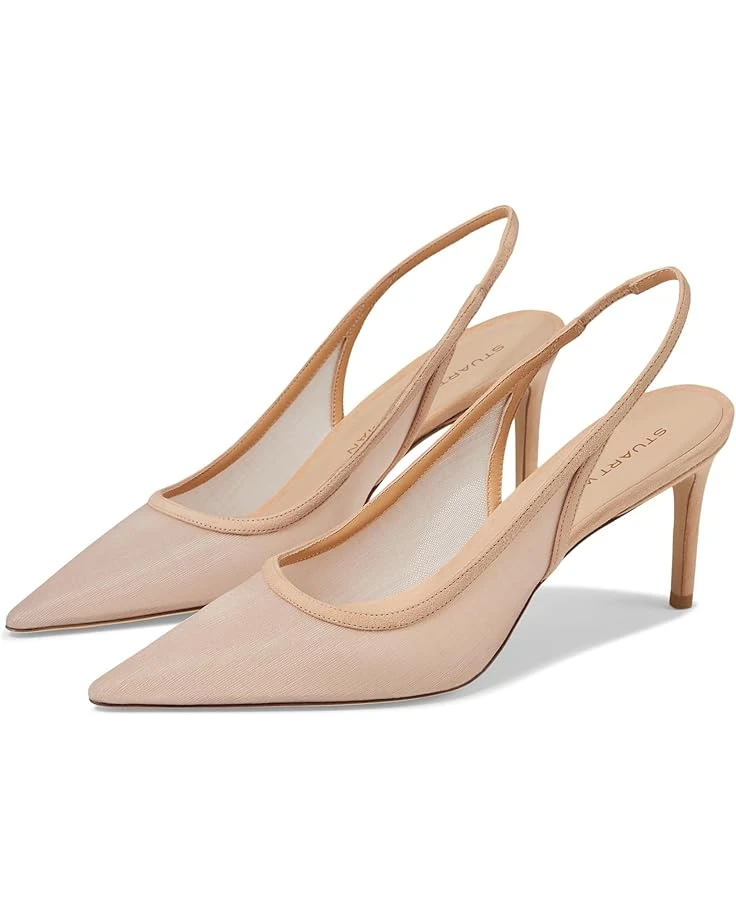 - Make a classy and elegant addition to your wardrobe with the Stuart Weitzman® Stuart 75 Slingback Pumps. Flaunting a closed pointed toe coupled with a slender stiletto heel, the shoes standout for their timeless appeal. These are crafted with a durable leather upper with a stretchy slingback strap for a secure fit, a breathable leather lining, and a padded EVA footbed for enhanced cushioning and support.