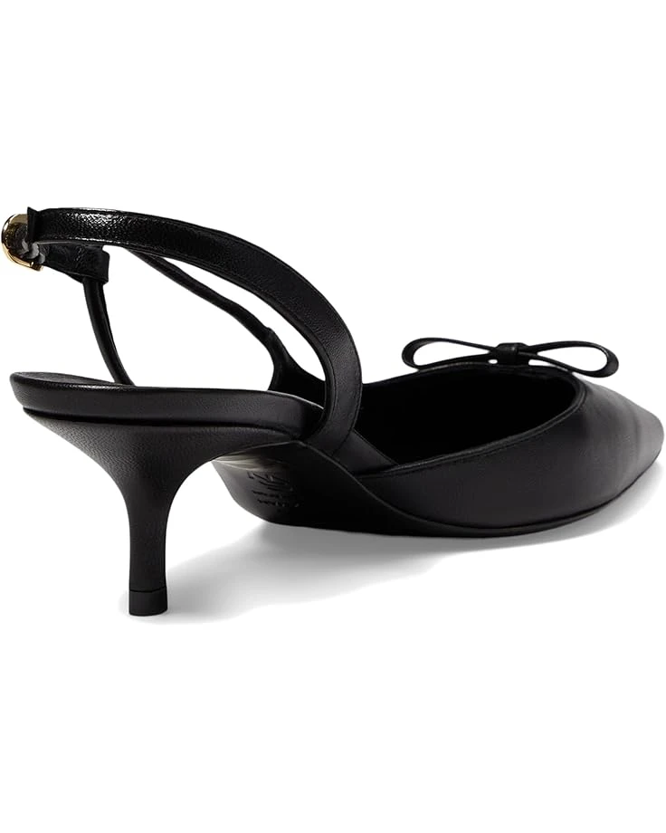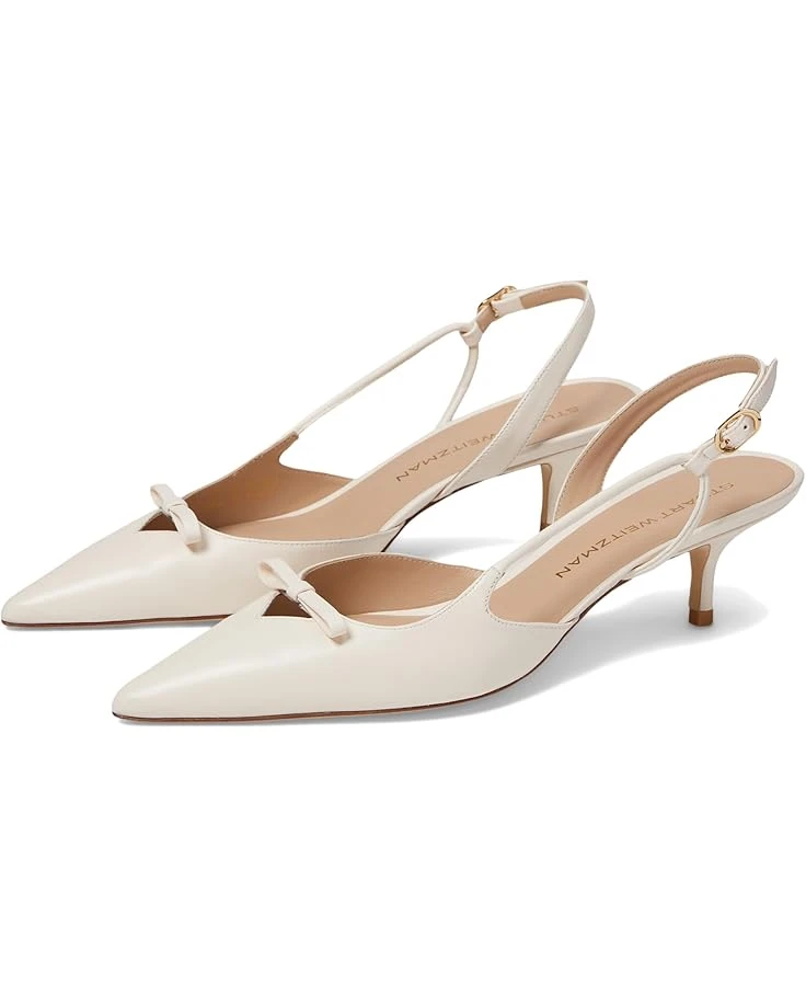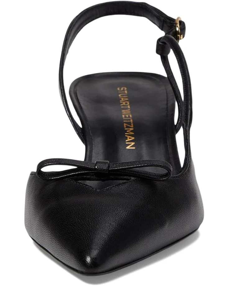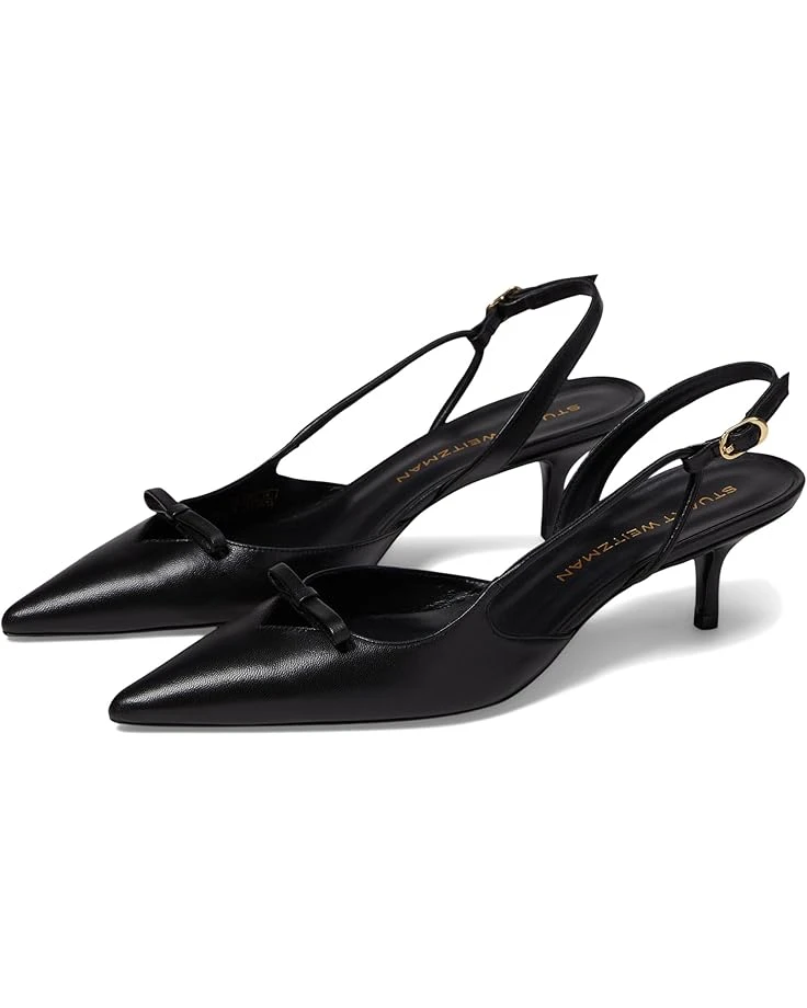 - Step into timeless elegance with the Stuart Weitzman® Tully 50 Slingback, a refined and versatile shoe that epitomizes sophistication. Featuring a sleek kitten heel and sharp pointed toe, this slingback exudes chic charm. The standout detail is the delicate bow adorning the toe, adding a touch of femininity and charm to the design. The slingback strap with an adjustable buckle closure ensures a secure and personalized fit.