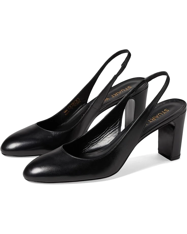 - Radiate your glamor look for a party donning the classy Stuart Weitzman® Vida 75 Slingback. The polished block heels feature adjustable slingback strap closure, almond toe design, and leather upper.